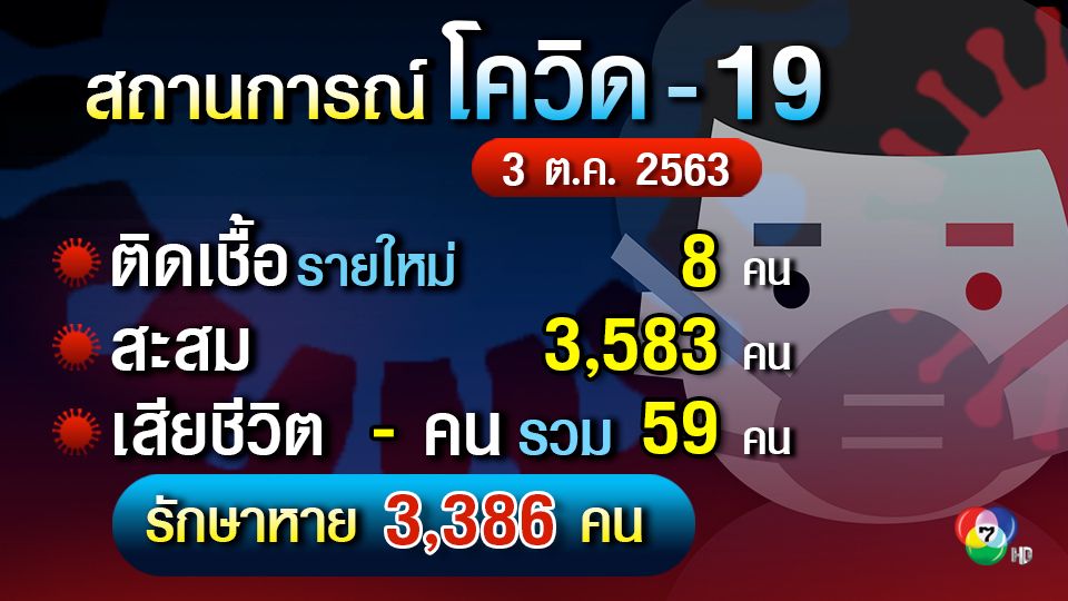 ไทยรัฐ ติดตามข่าวล่าสุด ข่าวด่วน ทันทุกเหตุการณ์ ข่าวกีฬา ผลฟุตบอล ข่าวบันเทิง ดารา สุขภาพ กิน เที่ยว ตรวจหวย ดูดวง เรื่องย่อละคร ไทยรัฐทีวี. นพ.โอภาส การย์กวินพงศ์ อธิบดีกรมควบคุมโรค กล่าวว่า สถานการณ์การระบาดโควิด 19 วันนี้ (3 ม.ค.) ที่มีจำนวนผู้ติดเชื้อจำนวนมากขึ้นเป็น 315 ราย กระทรวง. 63) ในไทยเพิ่มขึ้น 34 ราย เป็นผู้ติดเชื้อในประเทศ จากจังหวัดสมุทรสาคร 12 ราย ส่งผลให้มีผู้ป่วยยืนยันสะสม 4,331 ราย จนกระทั่งวันนี้ พบเพิ่มถึง 29 ราย จึงสรุปว่า จ.ระยอง พบผู้ติดเชื้อทั้งหมด 36 ราย โดยต้นเหตุมาจากบ่อนการพนันแห่งหนึ่งใน อ.เมือง. ผู้ติดเชื้อวันนี้เกือบ 20 ราย แต่ก็มีรักษาหายได้กลับบ้านอีก 11 ราย #โควิด19 #ไทยรัฐออนไลน์