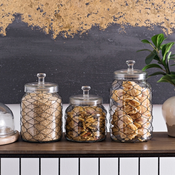 Glass Kitchen Canister Set : Lodge 4 Piece Rust Metal Glass Kitchen Canister Set : Bringing a fresh look to your kitchen, this set of 5 clear glass kitchen canisters are the perfect one!. Designed with a natural bamboo lid with the silicone seal, these multipurpose canisters provide airtight protection for both dried items such as pasta and spices, along with being hot/cold resistant to store liquids and everything in between. The whole is functional when it comes to storage, and at the same time, it is visually present in the kitchen or dining room. 98 list price $34.98 $ 34. This glass 3 piece kitchen canister set is the perfect storage containers ideal for any kitchen or pantry. Sold and shipped by home basics.